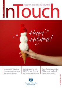 K IA NOHO TATA INCLUSIVE INSPIRING INFORMATIVE SUMMER 2025 Lessons from Nigel Latta and life with Myotonic dystrophy Living with purpose MDA fundraiser flexes its muscles Muscling up for our 2025 Annual Appeal A family’s story of resilience Early Christmas gift for William and his family Happy Holidays!